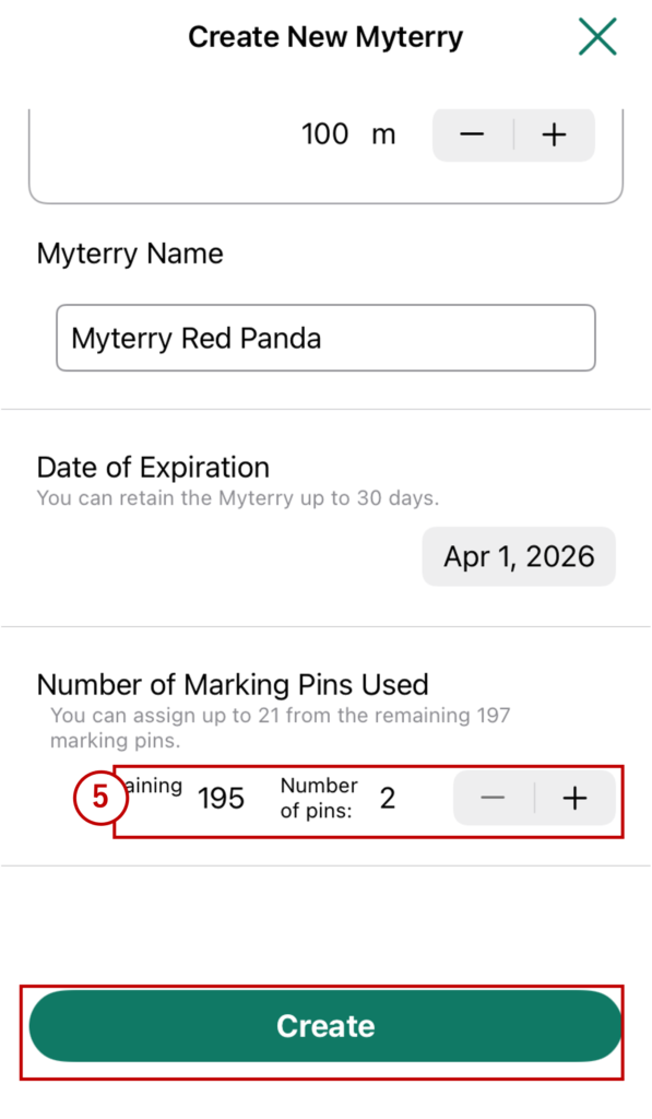 Once all fields have been filled in, tap “Create” to create your Myterry.
