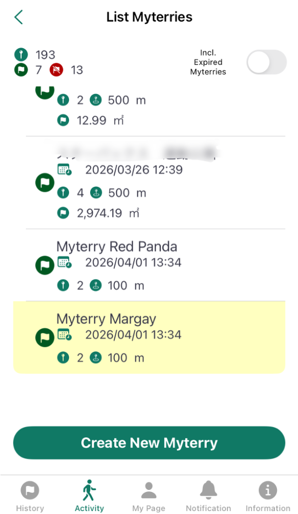 To create a Myterry, go to “Activity Menu” > “Myterry List” and select “Create New Myterry.”